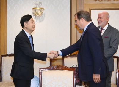 벨기에 부총리 겸 고용경제농업부 장관과 인사하는 구윤철 부총리