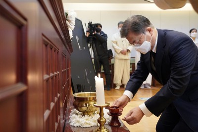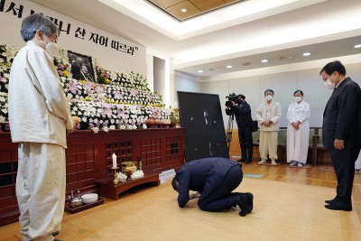 고(故) 백기완 선생 빈소 찾아 유족 위로하는 문재인 대통령