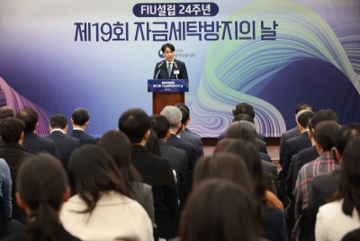자금세탁방지의 날 기념식, 환영사 하는 이형주 FIU 원장