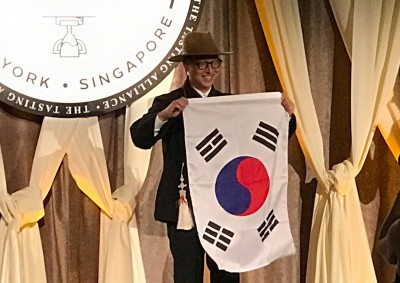 베스트 오브 클래스 수상 후 태극기들고 기념촬영하는 도정한 '기원 위스키' 대표