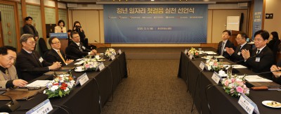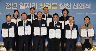기념촬영하는 '청년 일자리 첫걸음 실천 선언식' 참석자들