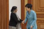[사진] 고노 다로 日 외무상과 수시마 스와라지 印 외무장관