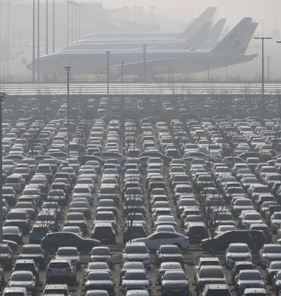 설 연휴 시작, 여행객 차량으로 가득 찬 인천공항 장기주차장