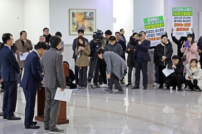"졸속통합 필요없다"…대전·충남 의장 기자회견서 '반대' 피켓 시위