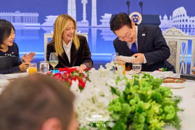 조르자 멜로니 총리 환영 만찬, 인사말하는 이재명 대통령
