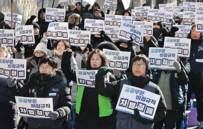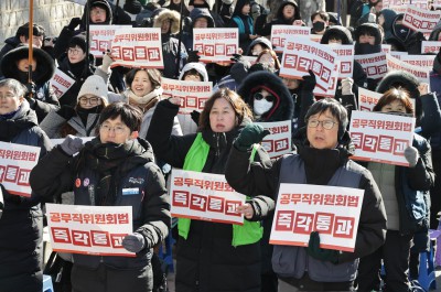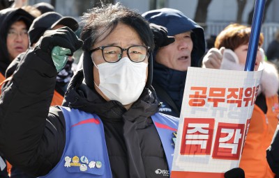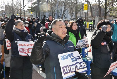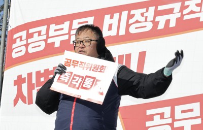 한파속 외치는 '민주노총 공공부문 비정규직노동자 결의대회'의 절규