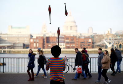 [사진] 英 사우스 뱅크서 '저글링' 길거리 공연 중인 남성