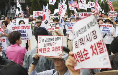 [사진] 자진 철거 없다... 광화문 광장에 모인 우리공화당