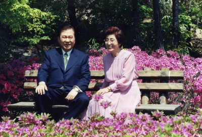 [사진] 청와대 철쭉꽃앞에서 활짝 웃는 이희호 여사와 고 김대중 전 대통령