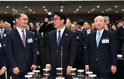 과학기술인·정보방송통신인 신년인사회 건배하는 김민석 총리