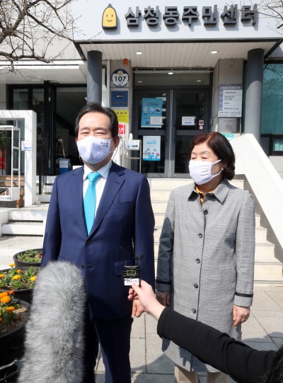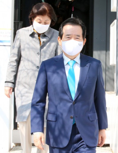 [영상] 사전투표 마친 정세균 "코로나 걱정 말고 투표하시길"