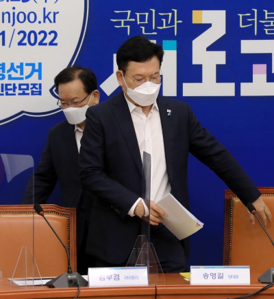 추경 논의 위해 자리 향하는 김부겸 총리 - 송영길 대표