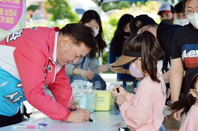 선거운동 잠시 멈춘 김영환·노영민 충북지사 후보..."오늘은 어린이들과 함께"