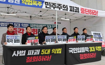 민주, 대통령실 앞에서 '경찰국 반대' 투쟁…"尹, 경찰장악 직접 사과하라"