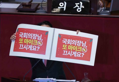 [영상] 정의당, '이 XX 사과하라!' 본회의서 시위...與 "적당히 좀 하세요"