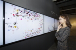 한국화의 거장 허달재 화백이 먹을 사용해 그린 매화 가지와 미디어 아티스트 진시영 작가의 꽃 사진을 SUHD...