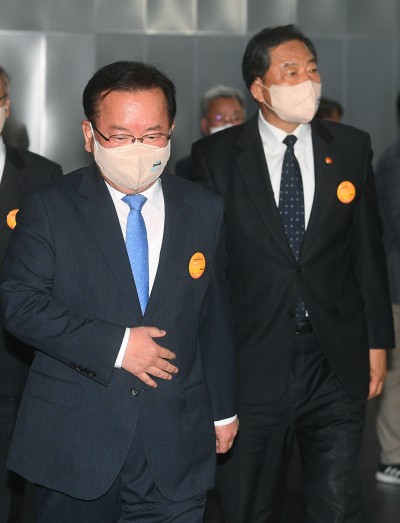 대한민국임시정부 수립기념식 참석하는 김부겸 총리-황기철 국가보훈처장