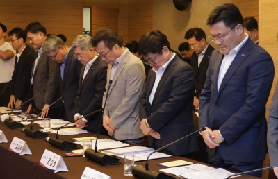 건설노동 희생자를 위한 묵념하는 김영훈 고용노동부 장관과 건설사 대표이사들