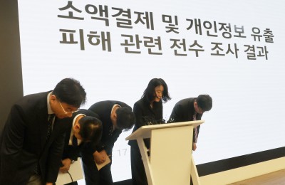 KT 소액결제 피해 고개숙여 사과하는 KT 네트워크 부문 부사장과 임원진