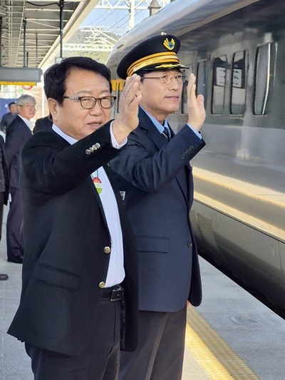 울진 KTX 고속철도 시대 '활짝'…방문객 맞는 손병복 울진군수
