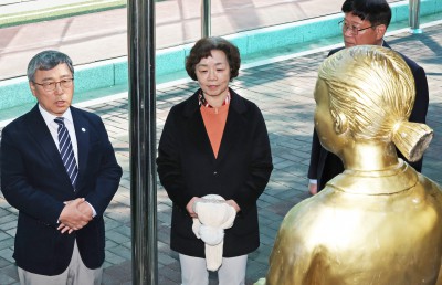 고등학교 내 '평화의 소녀상' 방문한 정근식 서울시교육감