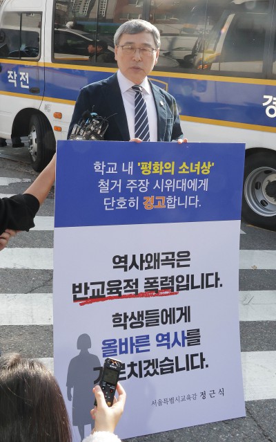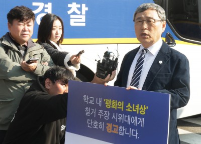 정근식 서울시교육감, 학교내 '평화의 소녀상'철거 주장 시위대 경고