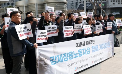 양대노총, 3.1운동 107주년 강제징용 노동자상 참배 기자회견