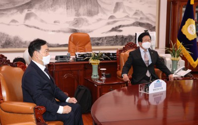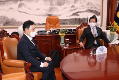 [영상] 김오수 검찰총장, 박병석 의장 예방…"국민 중심 검찰 되겠다"
