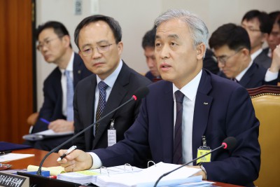 의원 질의에 답하는 윤명규 주택도시보증공사 사장 직무대행