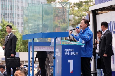 이재명, '방탄 유리막' 안에서 유세...대선 후보 최초