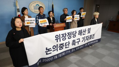 '위성정당 논의 중단하라' 미래한국당-더불어민주당 규탄 나선 정치개혁공동행동