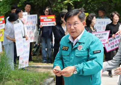 소각장 추가설치 반대 기자회견 입장하는 박강수 마포구청장