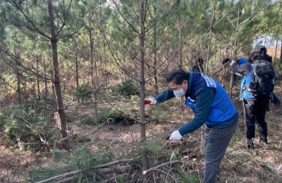 천연기념물 '울진 행곡리처진소나무' 종자 수집하는 문화재청