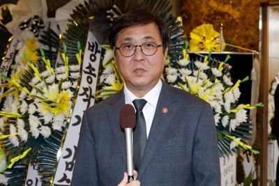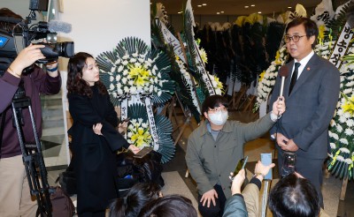 故 이순재 빈소 앞에서 입장 밝히는 최휘영 문화체육관광부 장관