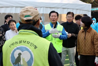정청래 대표, 취임 100일 유기견 보호소 찾아 봉사활동