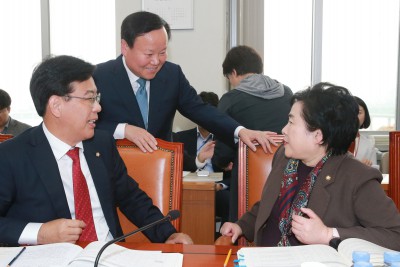 [사진] 예산결산특별위원회 예산안조정소위원회의, 대화 나누는 김재원 - 신용현