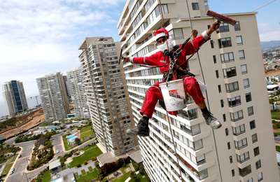 [사진] "즐거운 크리스마스 보내세요"...창문 닦다 포즈 취하는 '산타'