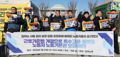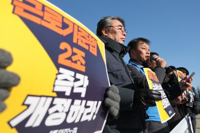 주먹 불끈 쥔 민주노총, 근로기준법 2조 즉각 개정하라!