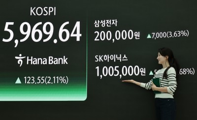 코스피 2.11% 상승 5969...삼성전자 20만 안착