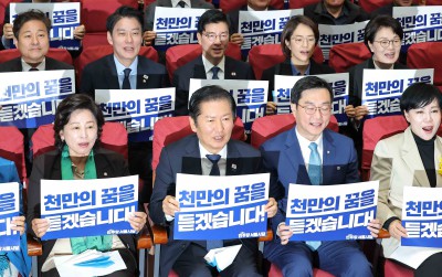 [영상] 與 "마스크에 구호 적은 건 좀" 野 "피켓에서 대폭 양보한 것"