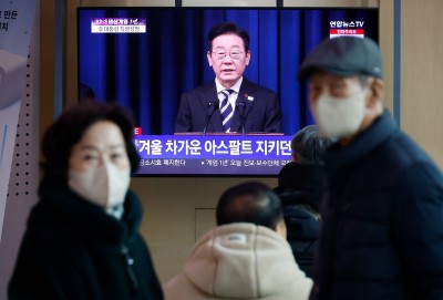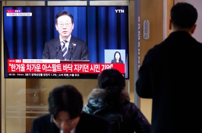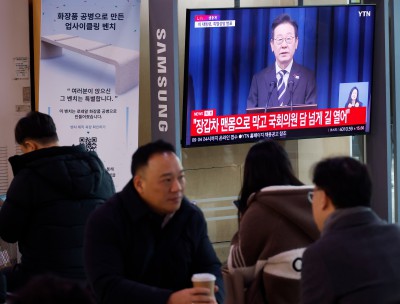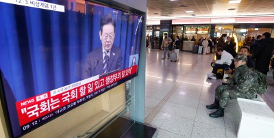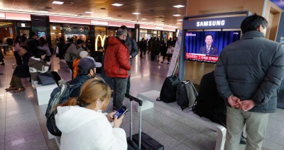 서울역 대합실에서 李 대통령 대국민 특별성명 시청하는 시민들