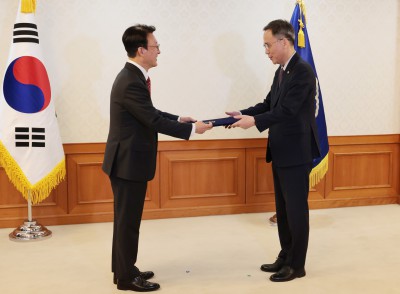 김영수 문화체육관광부 제1차관에게 임명장 수여하는 김민석 총리