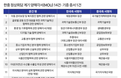 노재헌 - 류웨이 - 한성숙 - 리러칭, 한중 MOU 체결식