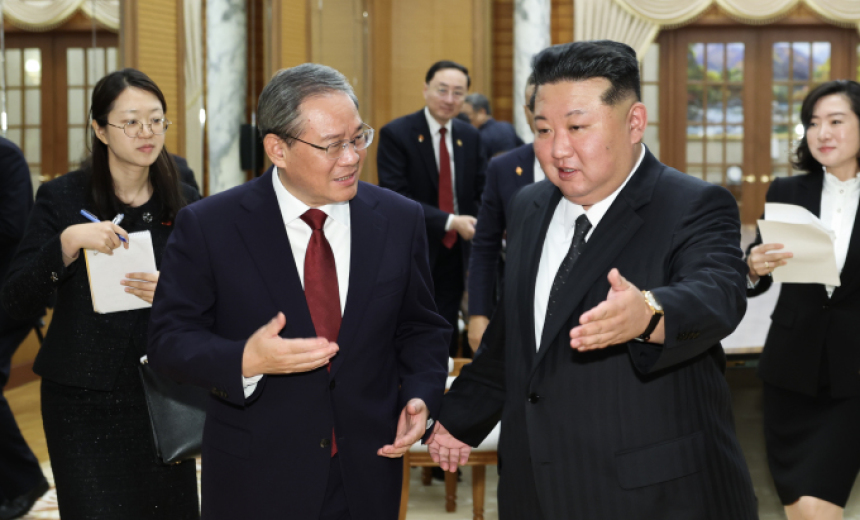 [사진] 김정은, 중국 총리와 화기애애 김정은 북한 국무위원장이 9일 평양을 방문한 중국공산당 서열 2위 리창(李强) 국무원 총리를 만나 손을 잡고 대화를 나누고 있다. [신화사=뉴스핌 특약] 조용성 특파원 = 2025.10.10 ys1744@newspim.c 25-10-10 08:04