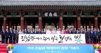 여수 진남관 해체복원 기념식 [무안=뉴스핌] 조은정 기자 = 김영록 전남도지사가 21일 여수 지남관에서 열린 '여수 진남관 해체복원 기념식'에 참석해 주요내빈들과 기념촬영을 하고 있다. [사진=전남도] 2025.10.21 ej7648@newspim.com 25-10-21 17:08